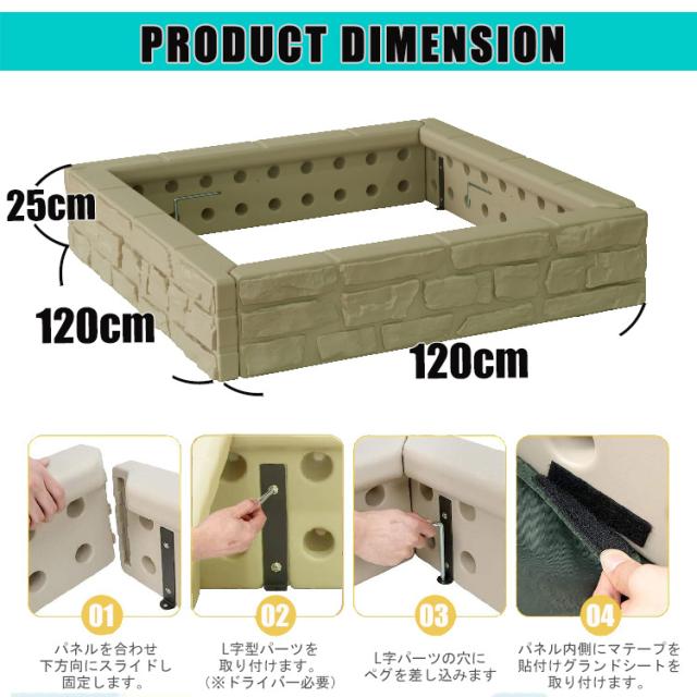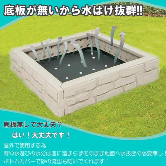 砂場 蓋付き サンドボックス ストーンウォール 砂場枠 カバー シート 四角形 プラスチック製 120x120x25cm 家庭用 大型遊具 すなば フレーム プランター /配送区分A