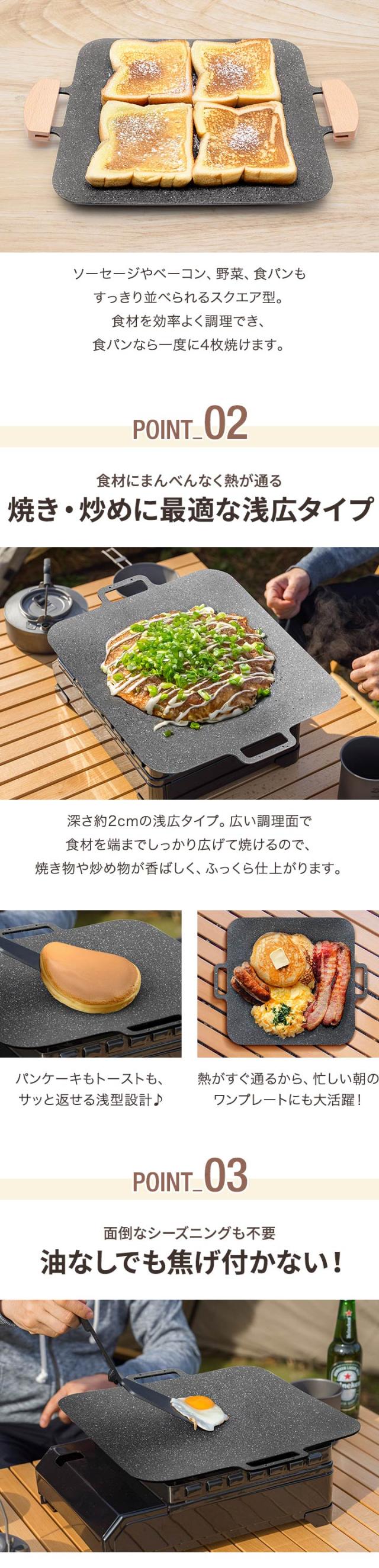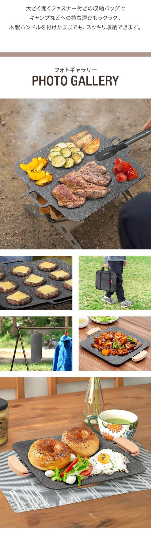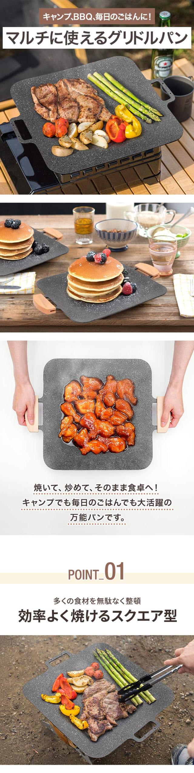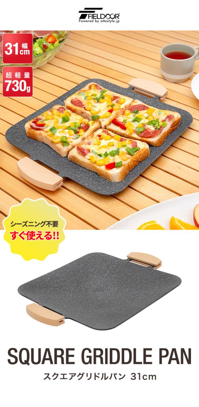 FIELDOOR スクエアグリドルパン 四角 31cm×37cm 直火/ガス/IH対応 軽量アルミ合金 角型 鉄板 グリルパン グリルプレート マルチグリドルパン フライパン アウトドア キャンプ キャンプ飯 焼肉 木製ハンドル・収納バッグ付き 1年保証 送料無料
