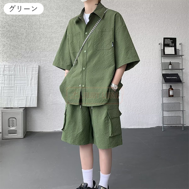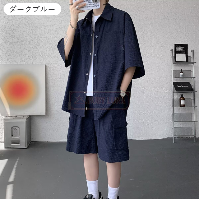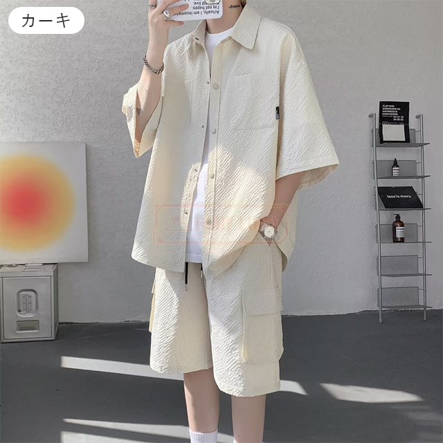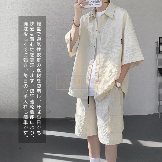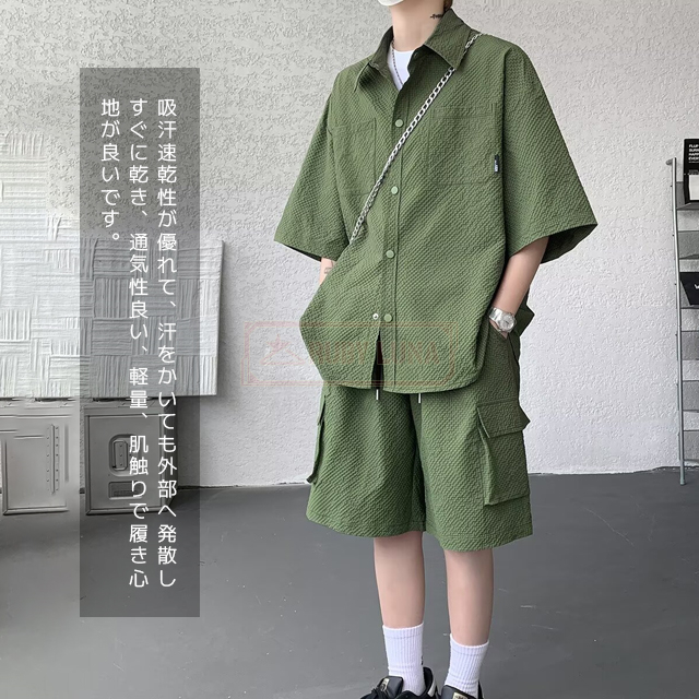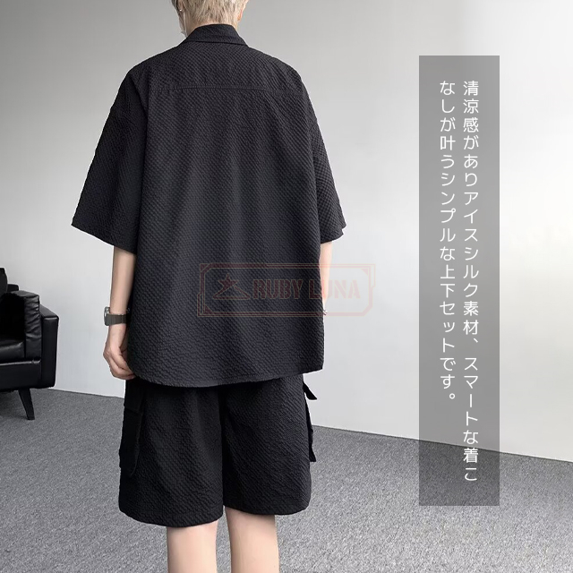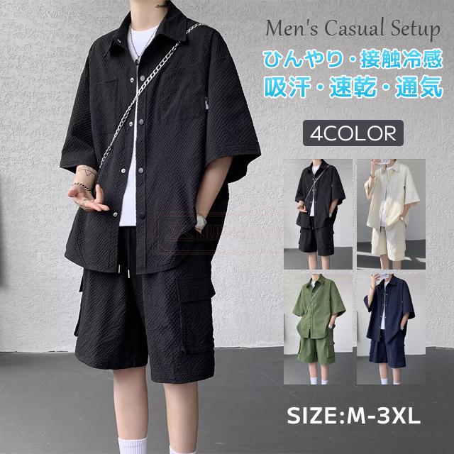 最安挑戦 冬新作 送料無料 新作 セットアップ メンズ サマーセットアップ 夏 薄手 上下セット アイスシルク セットアップ ひんやり 接触冷感 無地 前開き 半袖シャツ ハーフパンツ 2点セット 快適 涼しい ゆったり 耐シワ 紳士服