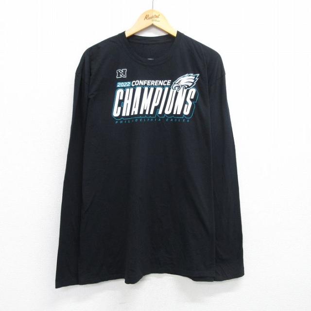 古着 長袖 Tシャツ メンズ NFL フィラデルフィアイーグルス 大きいサイズ コットン クルーネック 黒 ブラック XLサイズ 中古 中古 古着