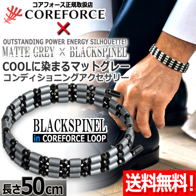 50cm コンディショニングアクセサリー コアフォースループ シルバーグレー× ブラックスピネル50 ゴルフ 身体能力 スポーツ ネックレス ブレス
