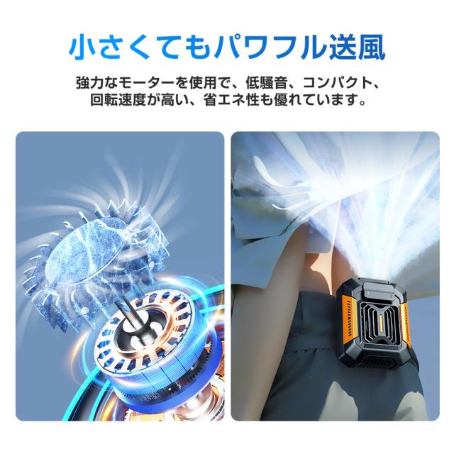 ・大容量バッテリーを搭載し、最大で10時間の連続使用が可能です。1日中快適な風を提供し続けます。