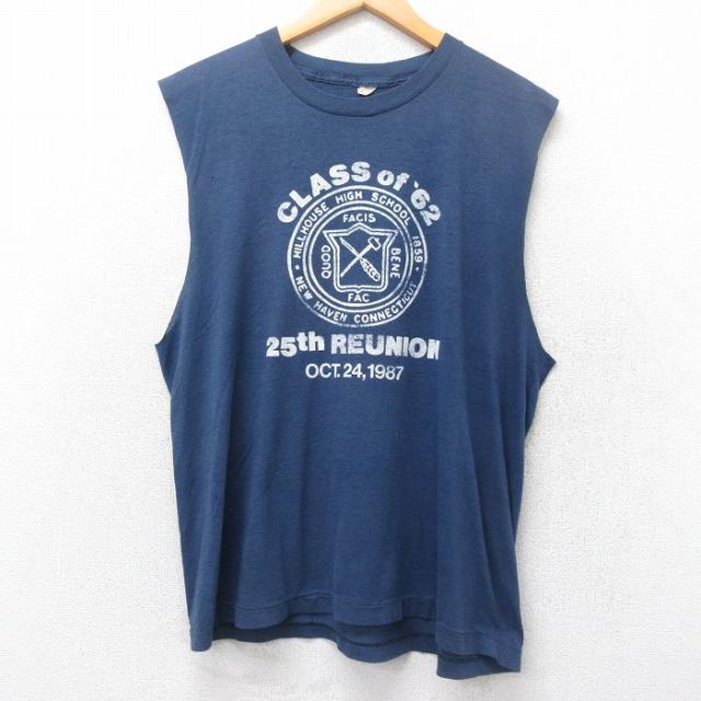 古着 スクリーンスターズ ノースリーブ ビンテージ Tシャツ メンズ 80年代 80s REUNION クルーネック 紺 ネイビー 霜降り Lサ 中古 古着