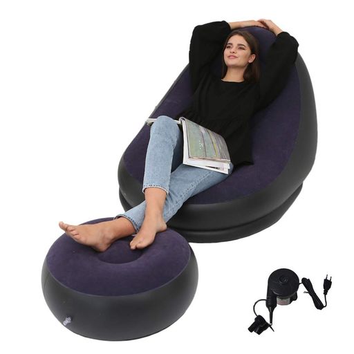 エアーソファー エアーベッド 空気ベッド オットマン付 椅子 耐荷重150 KG一人掛け 電動空気入れ付き インテリア 座椅子 セット (ダークブルー)
