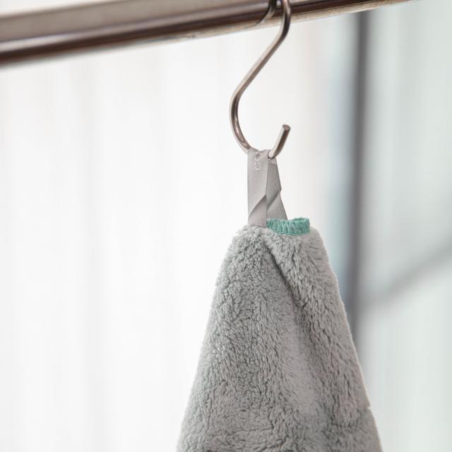 ●タオルの中央にロゴ入りのリボンが付いているので、フックに掛けられます。