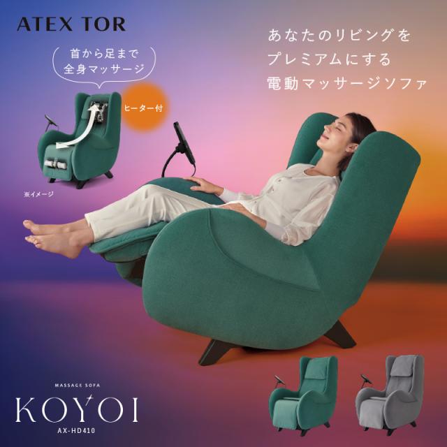 【公式】マッサージチェア マッサージソファ KOYOI こよい AX-HD410 本格的 マッサージ機 マッサージ器 ソファ チェア 椅子 一人掛け エア 電動 リクライニング 首 肩こり 腰 お尻 背中 全身 指圧 リラックス 誕生日 プレゼント アテックス おすすめ 母の日 おうち時間 2026