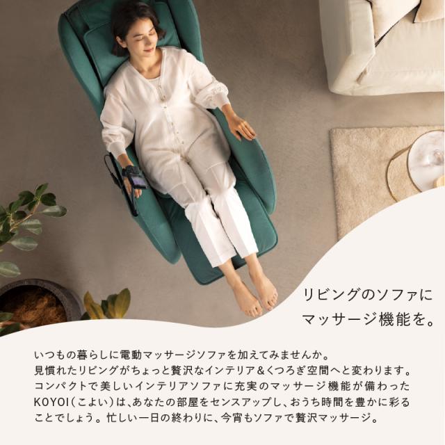 KOYOIは首から足まで全身ほぐす、ラグジュアリーでプレミアムなマッサージソファです。インテリアに溶け込むデザインで本格的なマッサージをお楽しみください。
