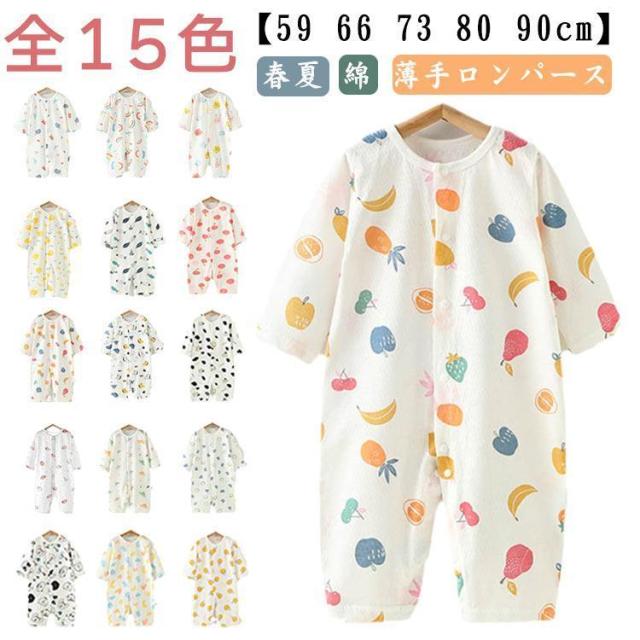 コットン 女の子 男の子 前開き カバーオール 夏 赤ちゃん ロンパース キッズ服 ベビー服 新生児 長袖 子供服 ロンパース 総柄 可愛い 出産祝い