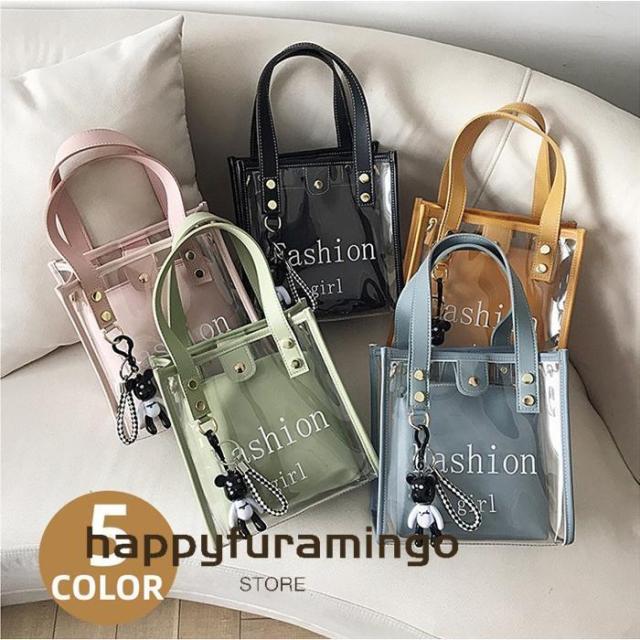 クリアバッグ レディース ハンドバッグ ショルダートートバッグ 斜め掛け チェーン付き リボン可愛い エコバッグ