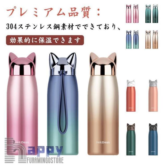 おすすめ 猫耳 保温 直飲み 魔法瓶 水筒 グラデーション ステンレスボトル 300ml 保冷 真空断熱 ステンレス製 マグボトル 子供 可愛い 大