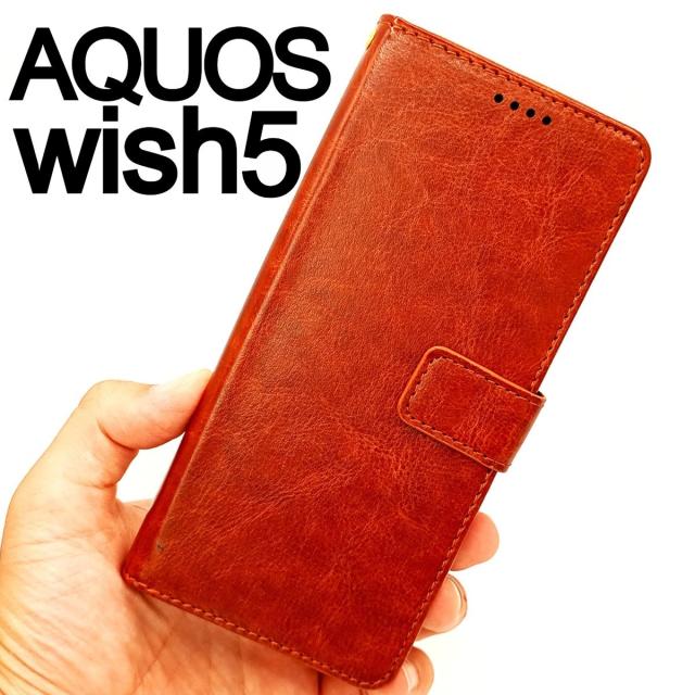 AQUOS wish5 手帳型 ブラウン スマホケース