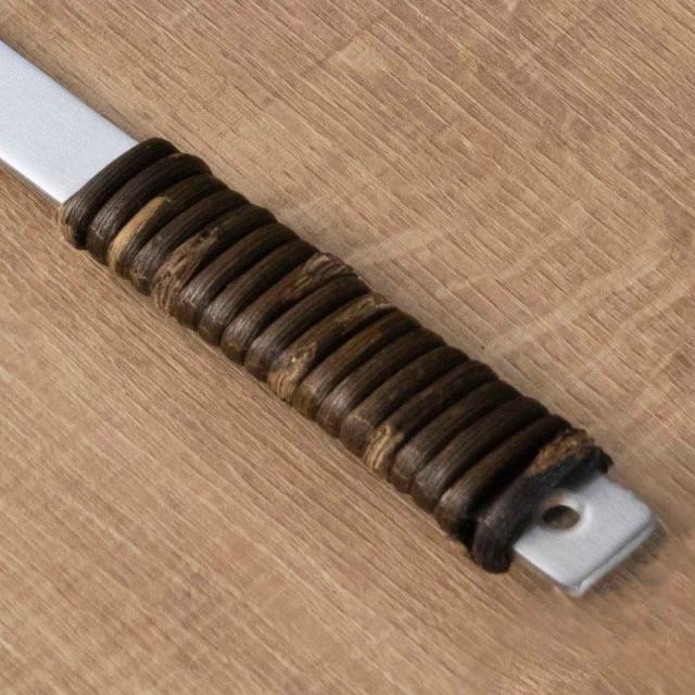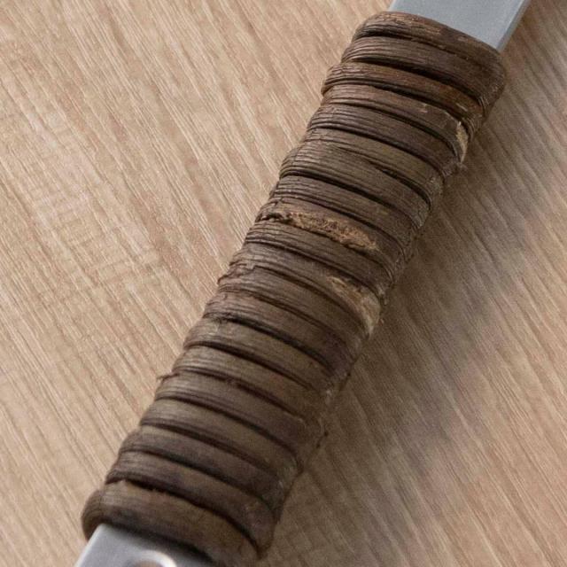 柄の部分には、しなやかで丈夫なアケビのツルが丹念に一つ一つ巻き付けられています。アケビ巻きは、使う人の手に優しく馴染み、熱くなりにくいのが特徴です。濡れても滑りにくく、「熱いものも安心してすくえる」という、機能性への細やかな配慮が込められています。