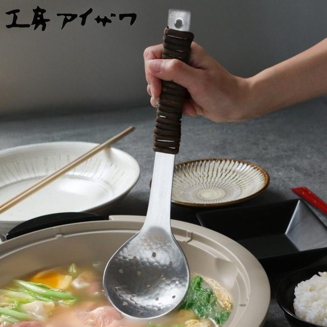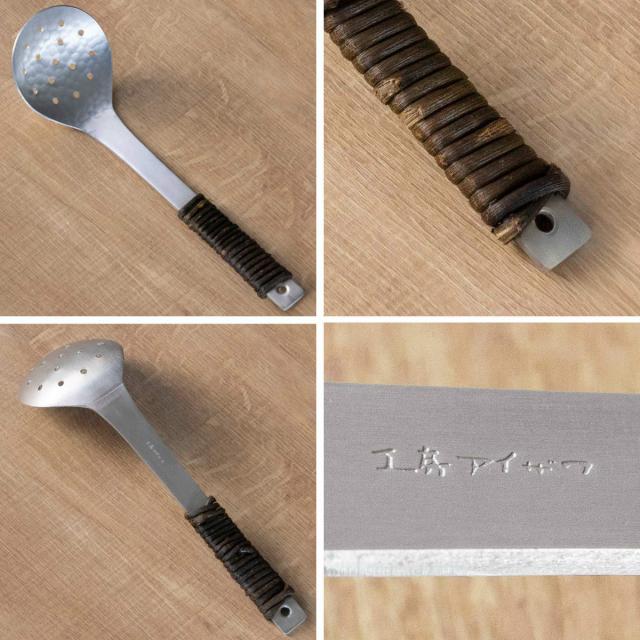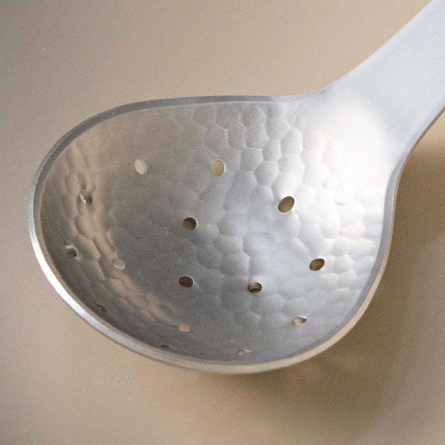 工房アイザワ アルミニウム アケビ巻穴明お玉 中 ( aizawa 穴あきお玉 穴杓子 レードル 穴あり 日本製 鎚目 サービングスプーン 取り分けスプーン アイザワ 燕三条 美しい 高級感 レトロ 職人技 高品質 シンプル キッチンツール )