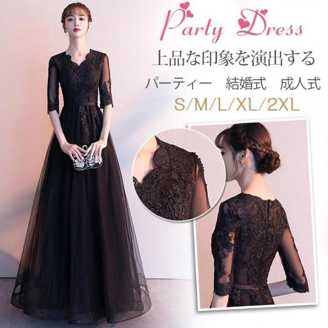結婚式ドレス 袖あり パーティードレス ロングドレス 演奏会 ドレス Vネック ピアノ 発表会 お呼ばれ 二次会 披露宴 着痩せ 上品 大人 可愛い lf1818