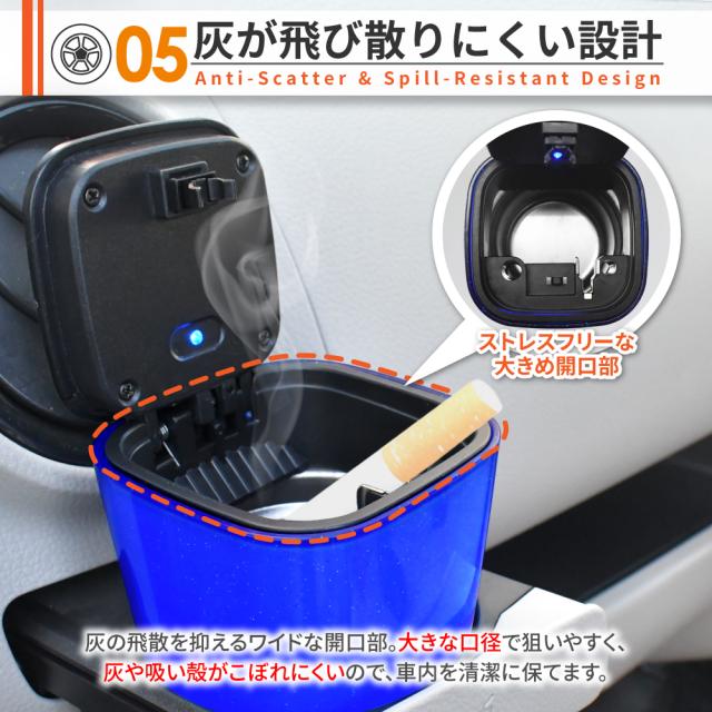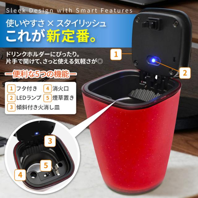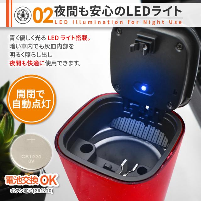 灰皿 車 LED搭載 車載LED付き灰皿 自動点灯 フタ付 蓋付き 灰詰まり防止 灰落とし 火消し穴 車灰皿 大容量 高温耐性 耐火 消火 防臭 タバコ置き タバコ 喫煙 ワンタッチ式 プッシュオープン アッシュトレイ クリーンスティック ドライブライフ シズカウィル
