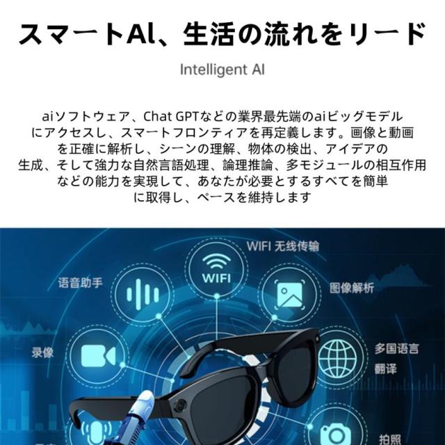 スマートグラス メガネ ワイヤレスメガネ スマート眼鏡 通知可能 音楽再生 カメラ付き スマートメガネ サングラス ワイヤレスイヤホン スポーツメガネ ブルート