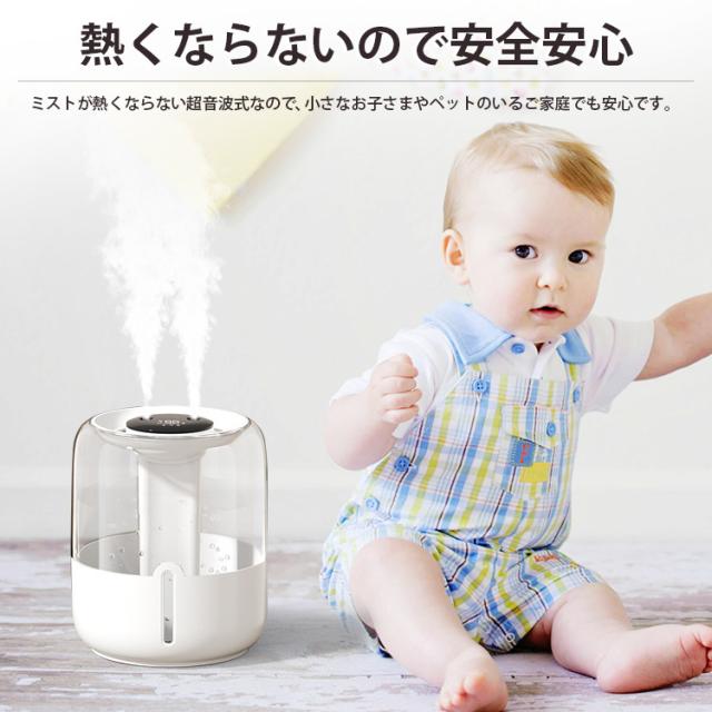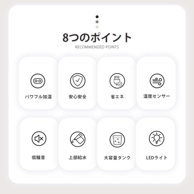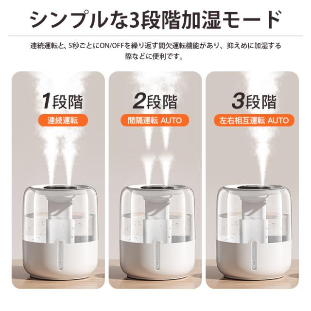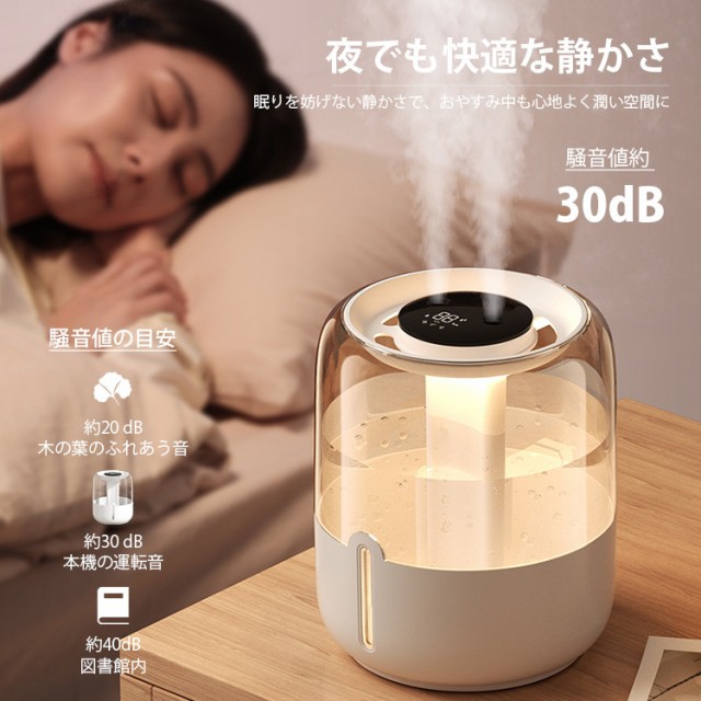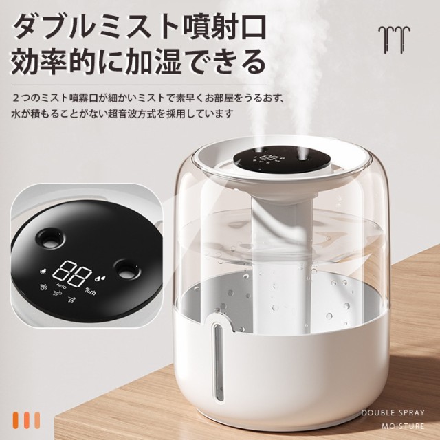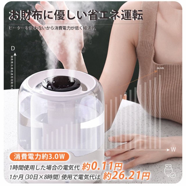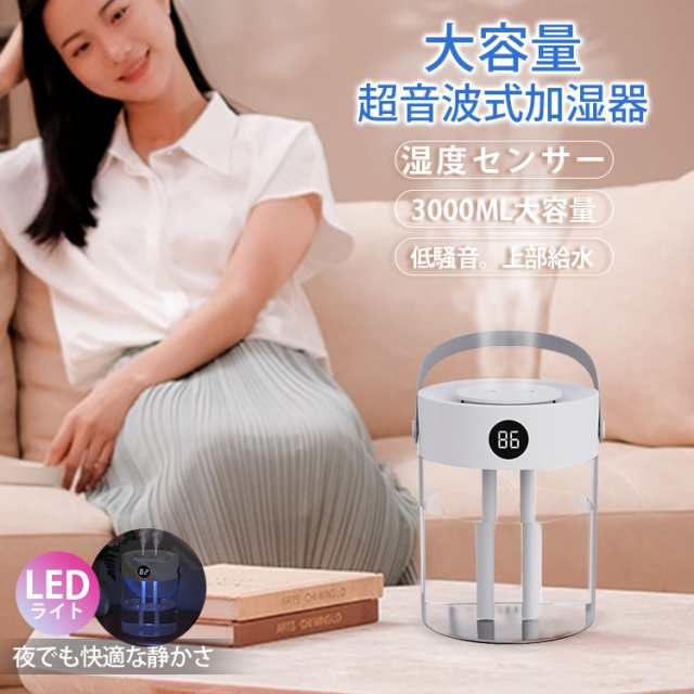 加湿器 連続加湿時間約12時間 低騒音 パワフル加湿 LEDライト 大容量 卓上 おしゃれ 省エネ 湿度センサー 超音波加湿器 超音波式加湿器 超音波 アロマ加湿器 上部給水
