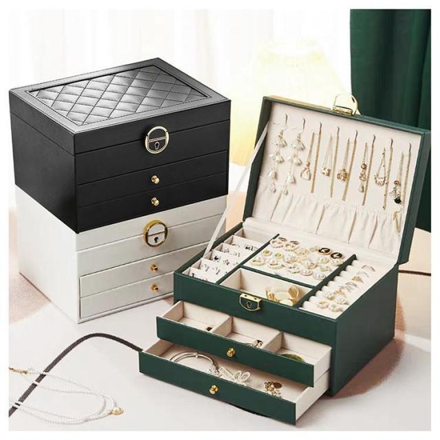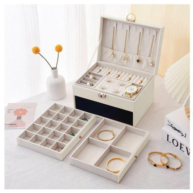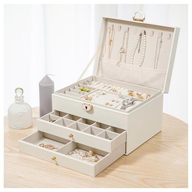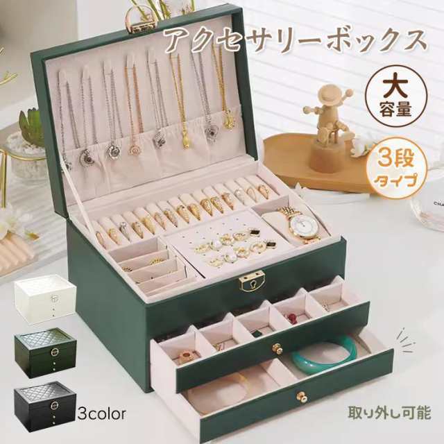 アクセサリーケース ジュエリーボックス 3層 鍵付き おしゃれ 大容量 革 アクセサリー収納 時計 指輪 ピアス ネックレス ボックス 宝石箱 小物入れ 誕生日 プレゼント