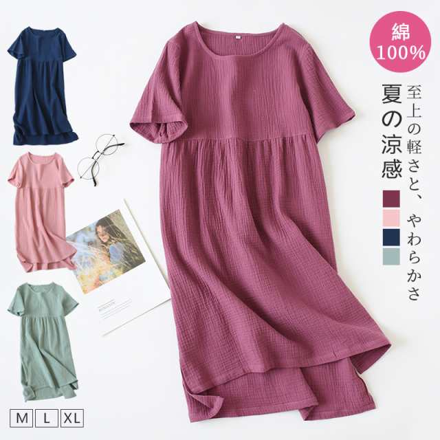 ダブルガーゼ パジャマ ルームウェア 部屋着 ワンピース ルームワンピース レディース ガーゼ ミモレ丈 半袖 ロングワンピース 部屋着