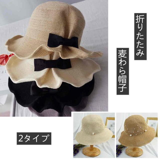 帽子 レディース 女優帽 ストローハット 折りたたみ 麦わら帽子 折りたたみ