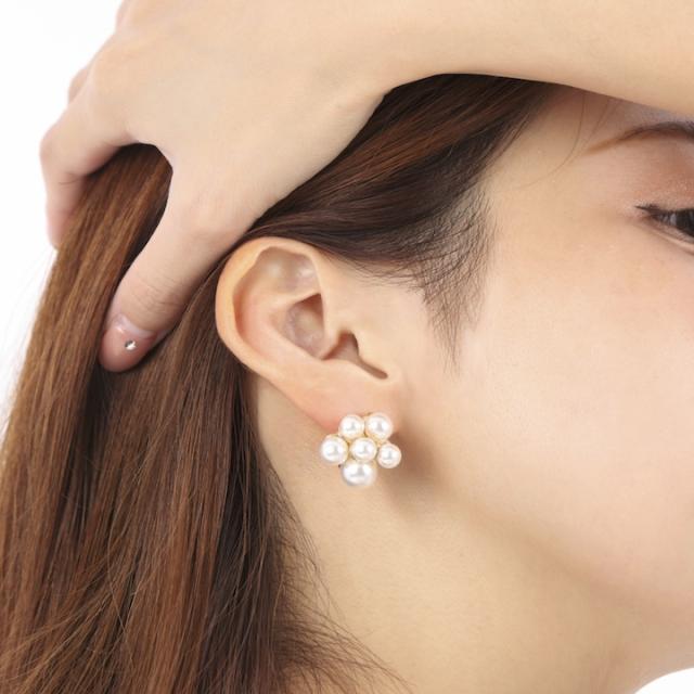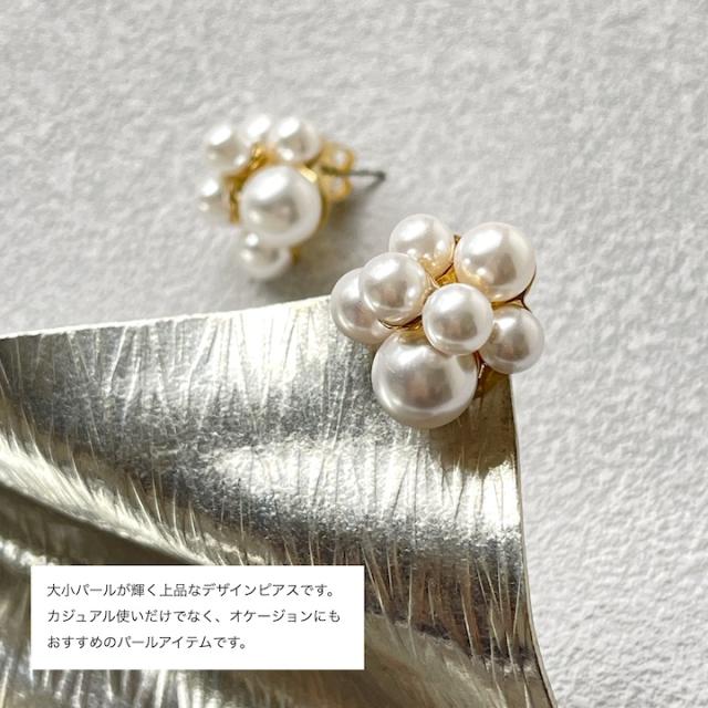 大小パールが輝く上品なデザインピアスです。カジュアル使いだけでなく、オケージョンにもおすすめのパールアイテムです。