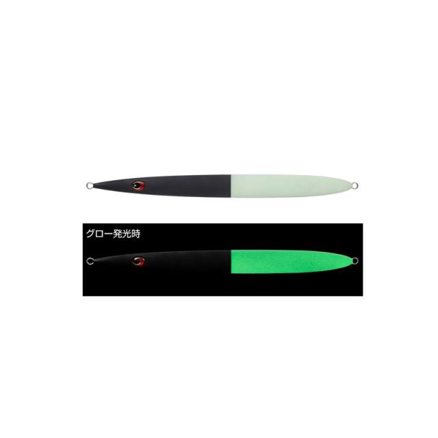 二枚潮などの潮が悪い状況でもスピーディに底取りができ、そして狙った動きを演出して誘うことができる圧倒的な操作性にこだわり、「上げ(ジャーク)」「下げ(フォール)」双方向に水抜けの良いノーズ&テール形状、かつ魚影が薄い状況でも視覚効果による高い集魚力で広範囲から魚を引き寄せてくれる扁平ロングシルエットを条件にデザイン。