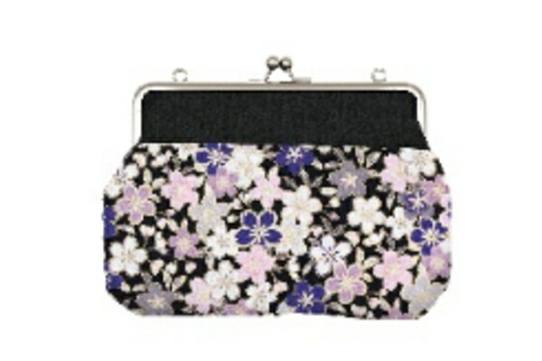 オオGMG35-TM004 【Ripple】【リップル】スクエア型がま口2WAYショルダーバッグ【黒】【ブラック】【桜づくし】【花柄】【ポーチ】【ケース】【かばん】【鞄】【小物入れ】【収納】【ショルダー】【斜め掛け】【お出かけ】【アウトドア】【雑貨】【グ
