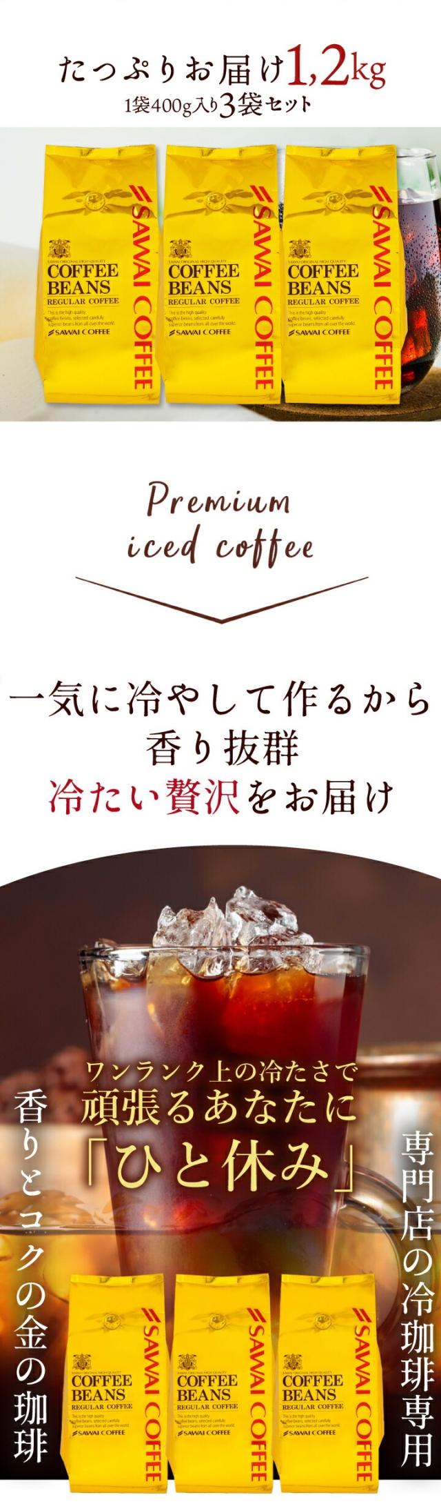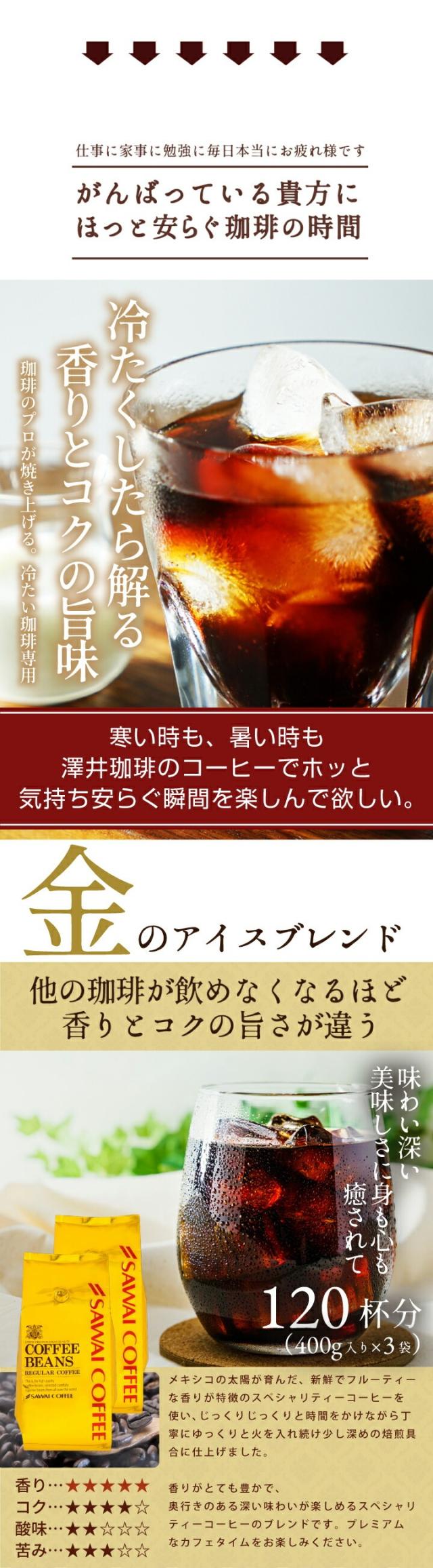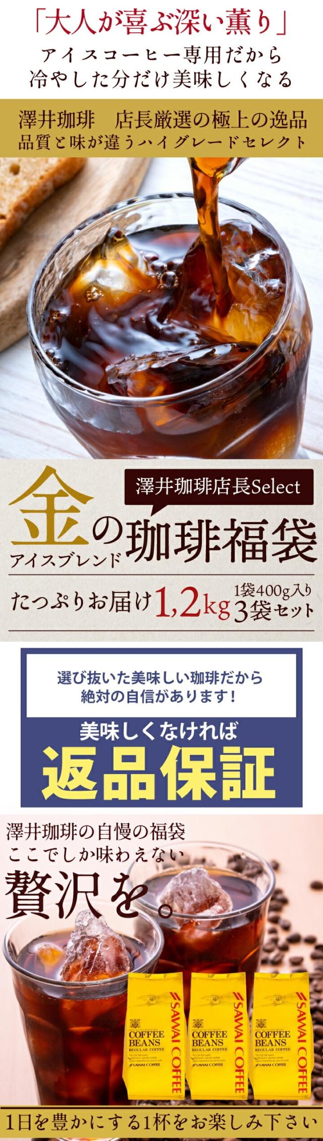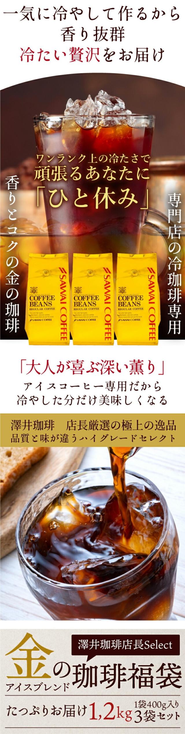 いまだけ\半額 50%OFF/ 金のアイスブレンド 1.2kg福袋 澤井珈琲 アイスコーヒー 水出し 水出し珈琲 アイスコーヒー豆 コーヒー 豆 粉 400g 3袋 コーヒー 粉 豆 送料無料