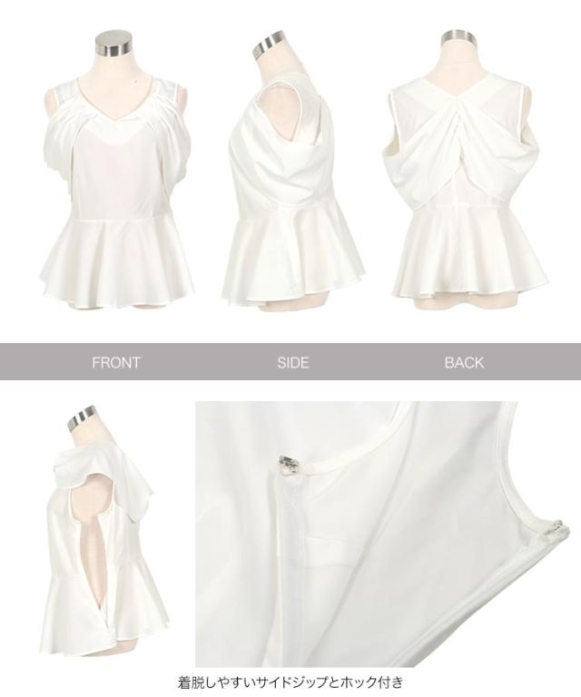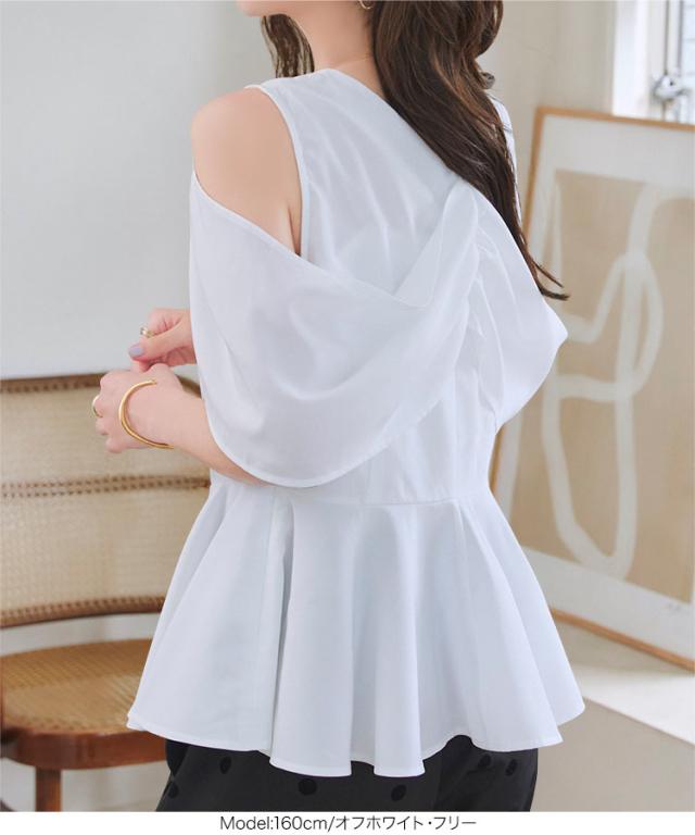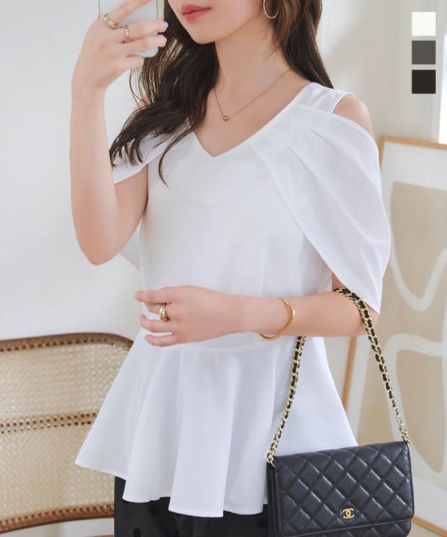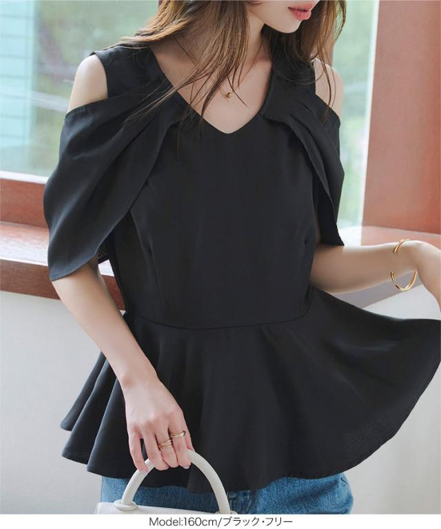 オープンショルダーブラウス C7493 入荷済 レディース 20代 30代 40代 オープンショルダー 肩開き 抜け感 華奢見え ペプラム ペプラムトップス Vネック 体型カバー ブラウス きれいめ 大人可愛い 着映えトップス サイドジップ 夏トップス