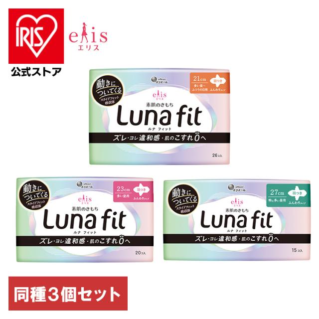 (検索用:生理・ルナ・ルナフィット・Lunafit・ナプキン・エリス・薄い・羽つき・21cm・23cm・27cm・26枚・月経・素肌のきもち・elis・エリエール・大王製紙・多い昼~ふつうの日用・4902011119343・4902011119329・4902011119312)