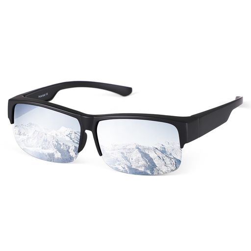 [TINHAO] オーバーサングラス 偏光 UV400 メガネの上から 半フレーム 超軽量 運転/釣り/ゴルフ 男女兼用 収納ケース付 (シルバーミラーレンズ)