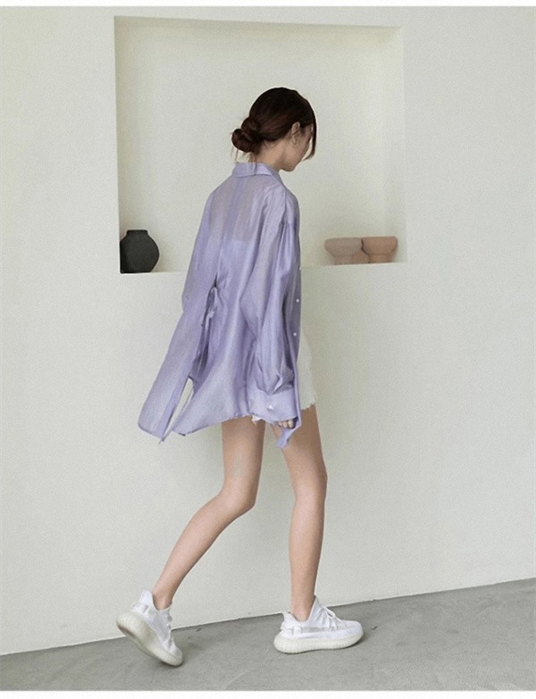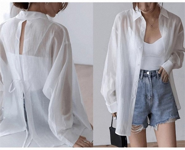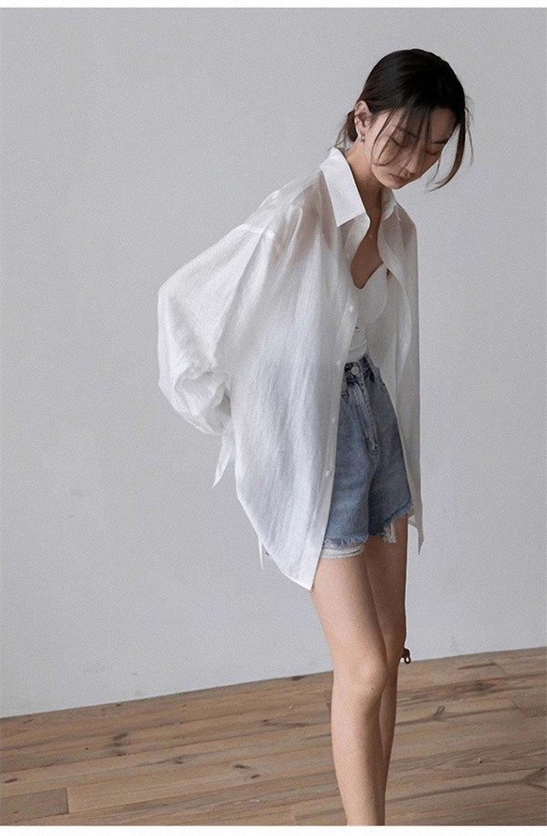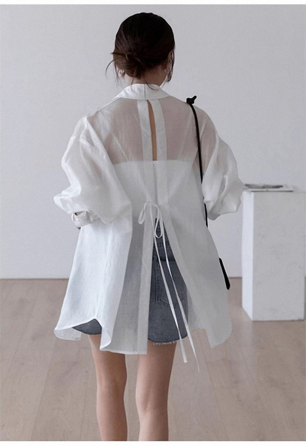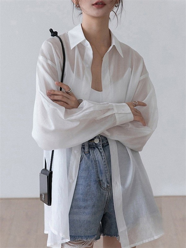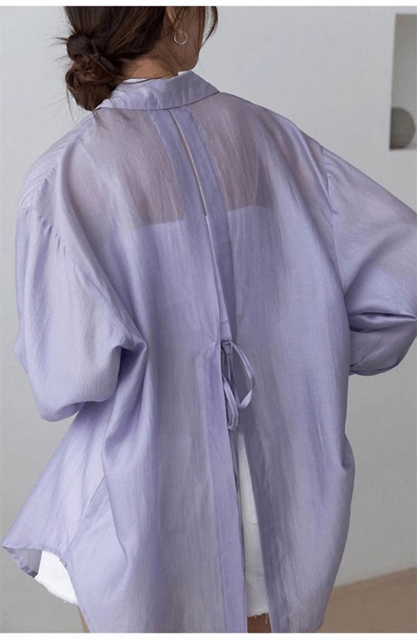 シアーシャツ 透け感 日焼け止め ブラウスレディース 長袖 トップス 前開き オーバーサイズ 体型カバー トップス 冷房対策 羽織 夏物 nj005c6c6m5