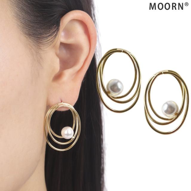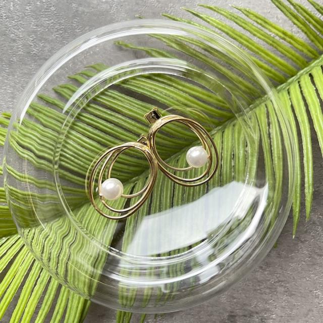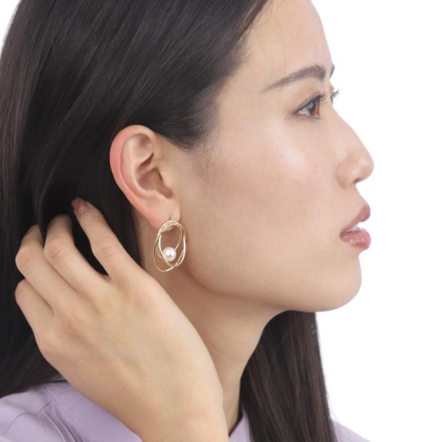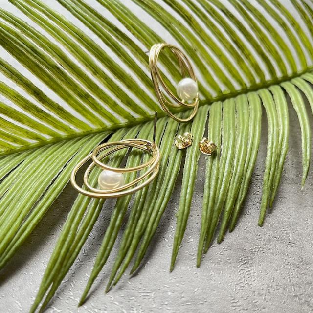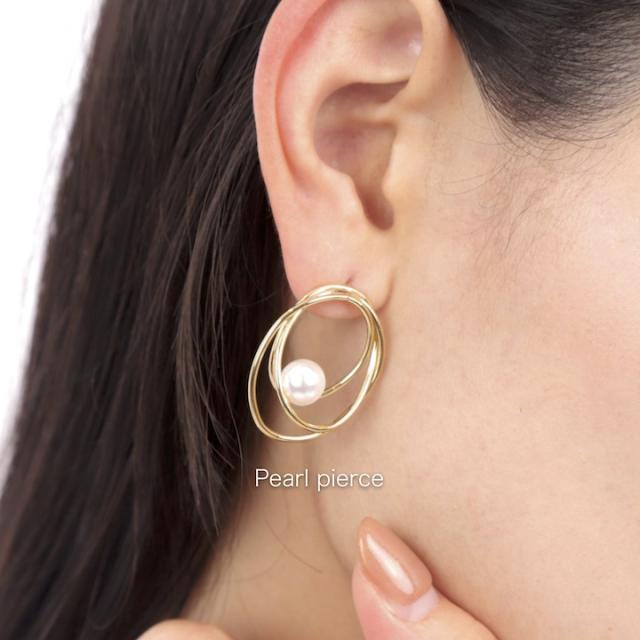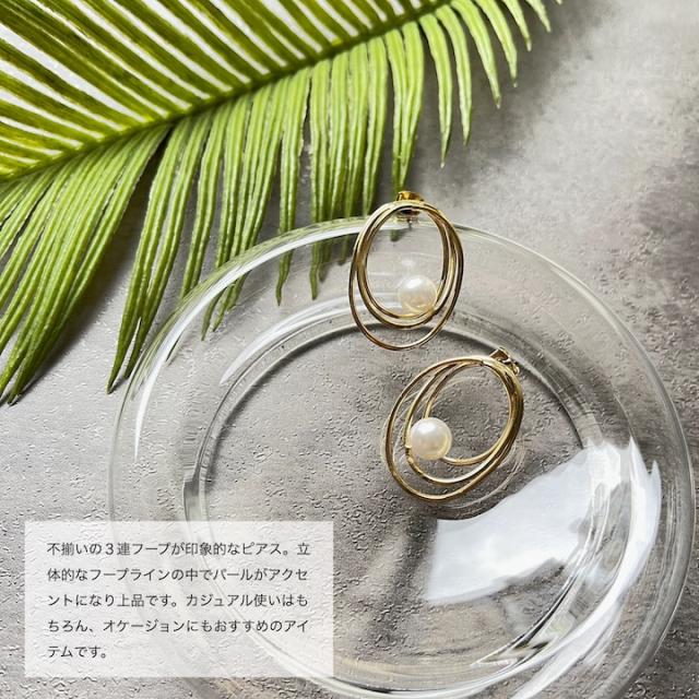 不揃いの3連フープが印象的なピアス。立体的なフープラインの中でパールがアクセントになり上品です。カジュアル使いはもちろん、オケージョンにもおすすめのアイテムです。