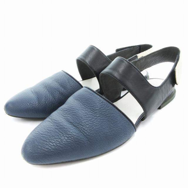 【中古】カンペール CAMPER カンペール Isadora フラットパンプス バックストラップ 起毛 39 紺 ネイビー /JS