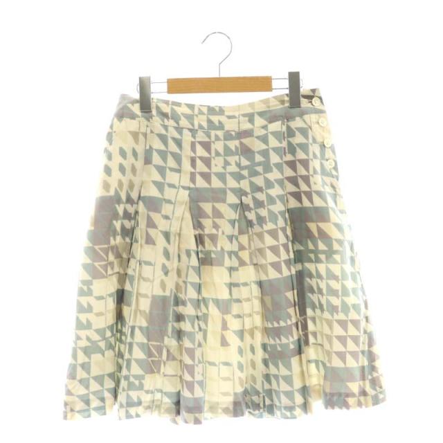 【中古】マーガレットハウエル MARGARET HOWELL 総柄 スカート フレア ひざ丈 タック 2 白 ホワイト 青 ブルー