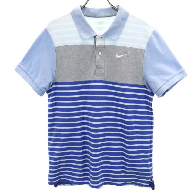 ナイキ ボーダー柄 半袖 ポロシャツ M ブルー系 NIKE 鹿の子 メンズ