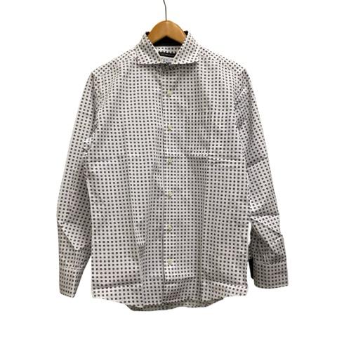 【中古】インターメッツォ INTERMEZZO シャツ 長袖 ホリゾンタルカラー 総柄 コットン 6812411-22 M 白 ホワイト 紫 パープル メンズ