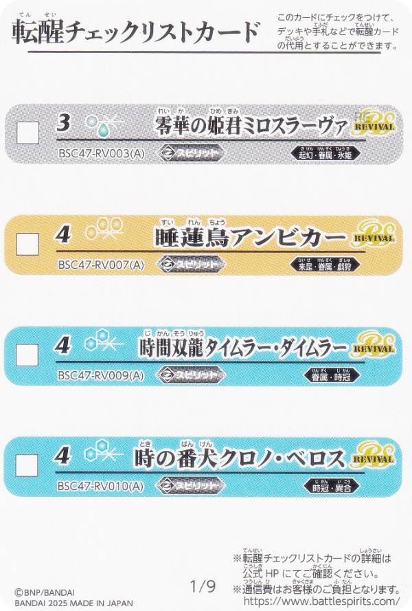 バトルスピリッツ BSC47 [転醒チェックリストカード 1/9] テーマブースター REBIRTH OF LEGENDS