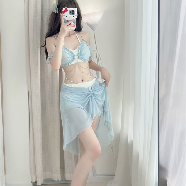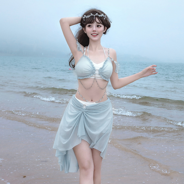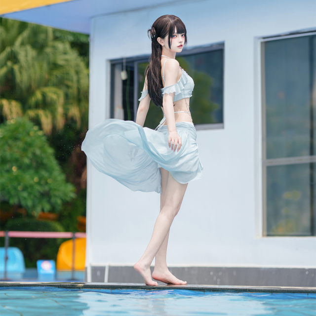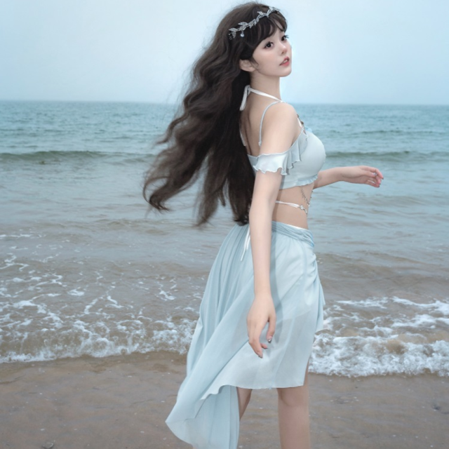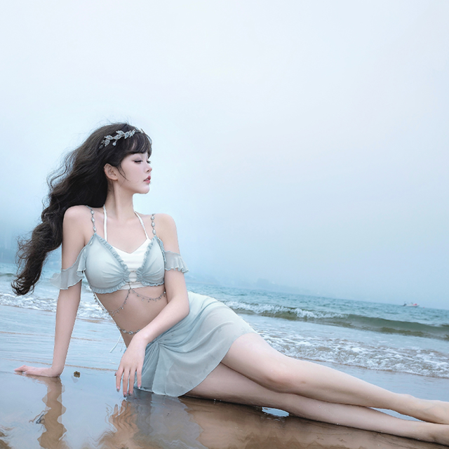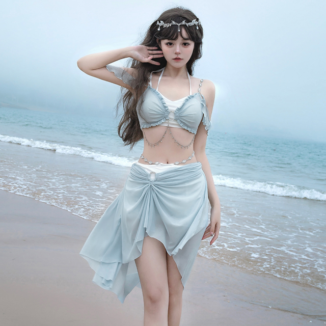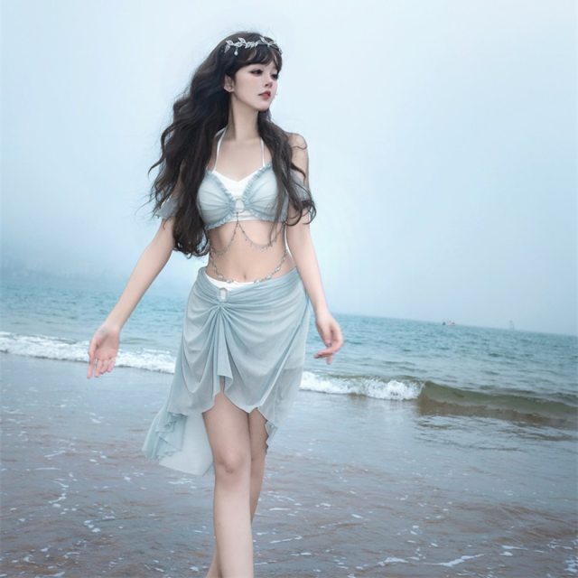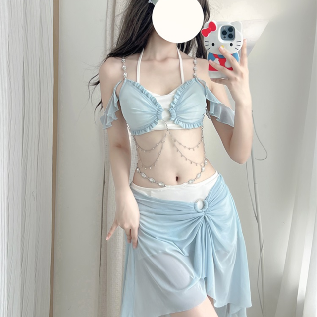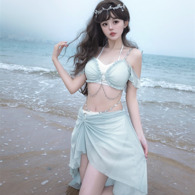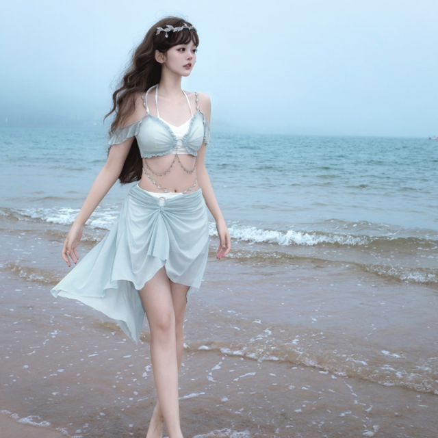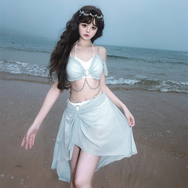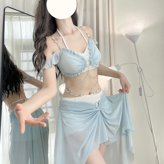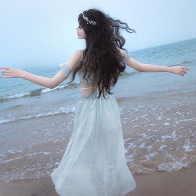 関連キーワード: #水着 #セパレート #ウエストカバー #アクア #ビーチウェア #シフォン #フリル #妖精 #ロマンティック #ビーチ #バカンス #夏