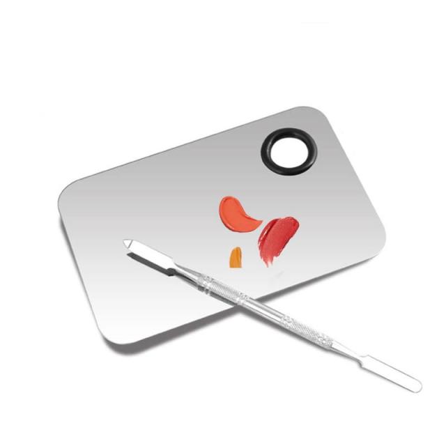 【BEAUTY PLAYER】スパチュラ メイク 化粧パレット サイズ11.5×7.6cm ステンレス製 化粧品ツール 化粧品用 メイクさん用 リキッドファンデーション ネイル カラーメイクツール スパレット棒付き ステンレス (正方)