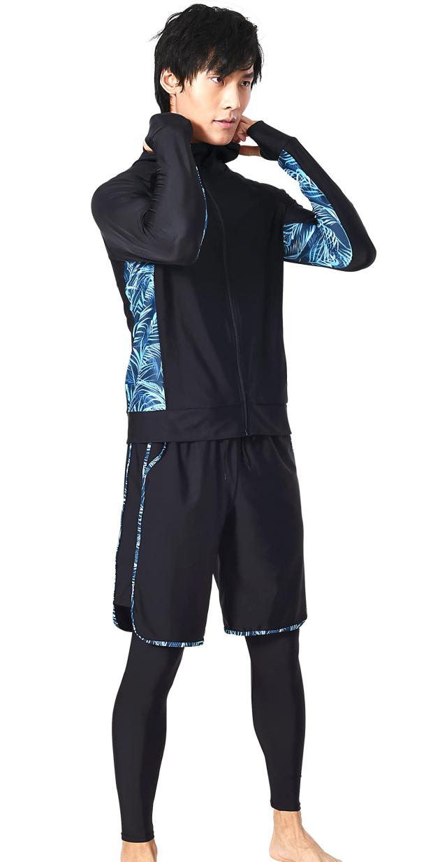 2022年7月発売メンズ水着ラッシュガードフード付き 豪華3点セットを紹介させていただきます。 素材構成: 82%ナイロン、18% ポリウレタン 3点セット:ラッシュガードフード付+サーフパンツ+10分丈レギンス ─ Detail Check Points ─ #1.ラッシュガードフード付き、フードを被れば、首周りと頭も紫外線をしっかりガード; #2.ファスナーガード付き、顔や首元への擦れを防止; #3・指穴付き、手の甲まで日焼けを防止; #4・ゴムウェストは紐付きサイズを調整できる; #5・海水パンツは両サイドに側ポケット付き; #6・レギンスにはメッシュインナ ー付き、安全安心; *伸縮性に優れた生地フィットネスに最適な水着セットです。耐衝撃性の高いポリカーボネイト採用、曇止め加工、UVカット機能を持っている。 ?*綺麗なラインが出るのですっきり男らしい印象に~ 昼間の暑い日ざしからはもちろん、夕方の浜風での 体の冷えもコレ一枚でバッチリ対策です UV対策安心のUPF50+(肌に有害な紫外線を99.8%以上カット)生地使用~様々なシーンで使える着るだけUV対策ウェア。*日焼け対策もこれでバッチリ~スポーティーなオシャレさ抜群ラッシュガード☆ 使いやすいブラックだから海やジムなど、 様々なシーンに大活躍。 *機能性だけでなくデザインも考え抜かれた商品です 海やプールに着たまま出かけて着たまま帰れるオシャレなデザインです。 サイズ レンジ: S:身長:155-165CM,体重:50-60KG; M:身長:165-175CM,体重:60-70KG; L:身長:172-180CM,体重:70-80KG; XL:身長:178-185CM,体重:80-90KG; 2XL:身長:182-195CM,体重:90-105KG;