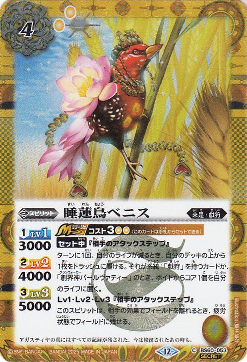 バトルスピリッツ 睡蓮鳥ベニス(シークレット) REBIRTH OF LEGENDS(BSC47) BS60-053 | 来是・戯狩 スピリット 黄