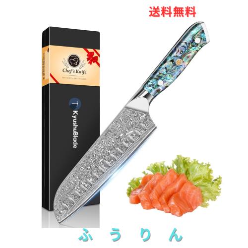 KyushuBlade 包丁 三徳包丁 ダマスカス包丁 刃渡り180mm. プロ用牛刀包丁, キッチン用万能包丁. 手打ち鍛造シェフナイフ, 本物のダマスカ