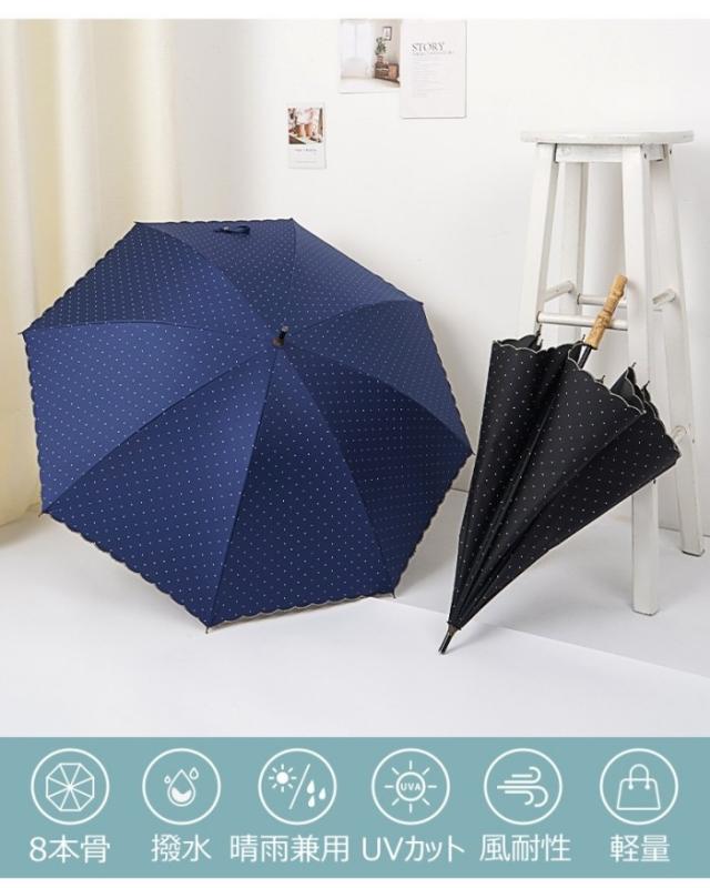 日傘 長傘 8本 レディース傘 晴雨兼用 紫外線対策 UVカット 軽量 軽い 撥水加工 雨傘 遮光 フリル かわいい おしゃれ 刺? 花柄 長傘 ドット柄 配色