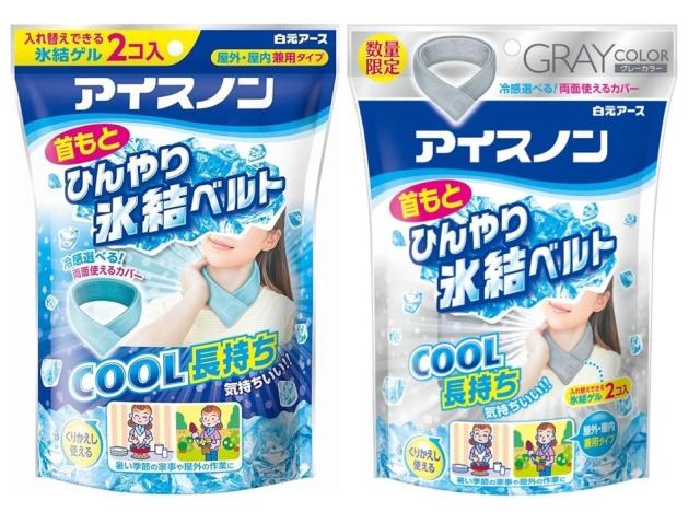 【アソート2個セット】白元アース アイスノン 首もとひんやり氷結ベルト グレー&ブルー 静岡倉庫