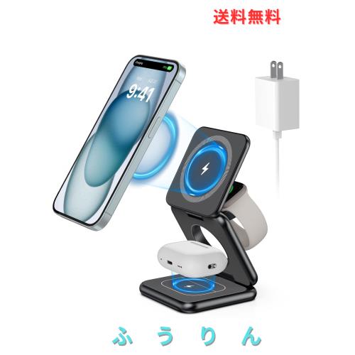 【一台三役・磁気吸着】もうケーブルの煩わしさに悩まされる必要はありません!私たちのワイヤレス充電器 3in1なら、iPhone16/15/14/13/12シリーズ・マグセーフ充電ケース付きのAirPods・アップルウォッチ全シリーズに対応しておりますので、異なる充電器を使う手間を省き、これ一台で完結。磁気でカチッとくっつけるだけで、スムーズに充電がスタートします。