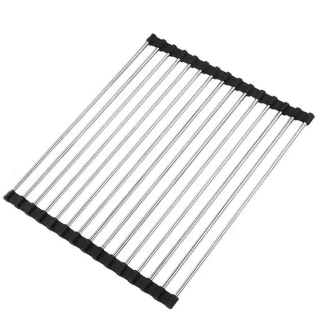 水切りラック 折りたたみ ブラック 45cm*28cm 食器 水切り シンク上水切りラック耐荷重約12kg 高効率 抗菌 耐熱 錆びない 滑り止め 錆びない 食器 乾燥 省スペース キッチン収納 【ステンレス鋼 & シリコン】Frenflu