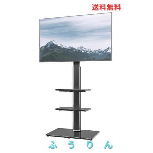 ◆商品名:Hemudu ユニバーサルフロアTVスタンド 19〜42インチフラットスクリーンTV用マウント、100度回転、高さおよび傾斜機能の調節可能、3つの棚