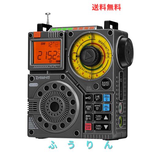 ZHIWHIS Bluetoothスピーカー BCLラジオ 短波受信機 VHF/FM/AM/SW/ワイドFM 懐中電灯 録音/APPコントロール/MicroSDカード対応/20時間連