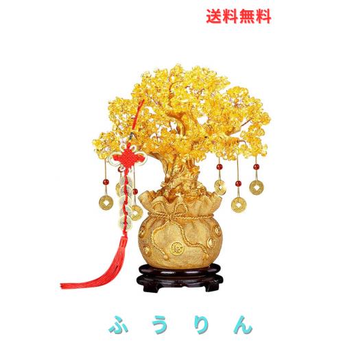 招財樹 金のなる木 黄水晶 シトリン 五帝銭 風水アイテム インテリア 金運祈願 開運 商売繁盛祈願 パワーストーン お礼 新年 贈り物 (金